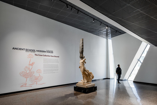 The Crow Museum’s first major exhibition is Ancient Echoes, Modern Voices: The Crow Collection Goes Beyond, which introduces its permanent collections to new audiences. The inaugural display features eight galleries showcasing hundreds of works, ranging from textiles and ceramics to sculptures and paintings, and includes an immersive multimedia installation.